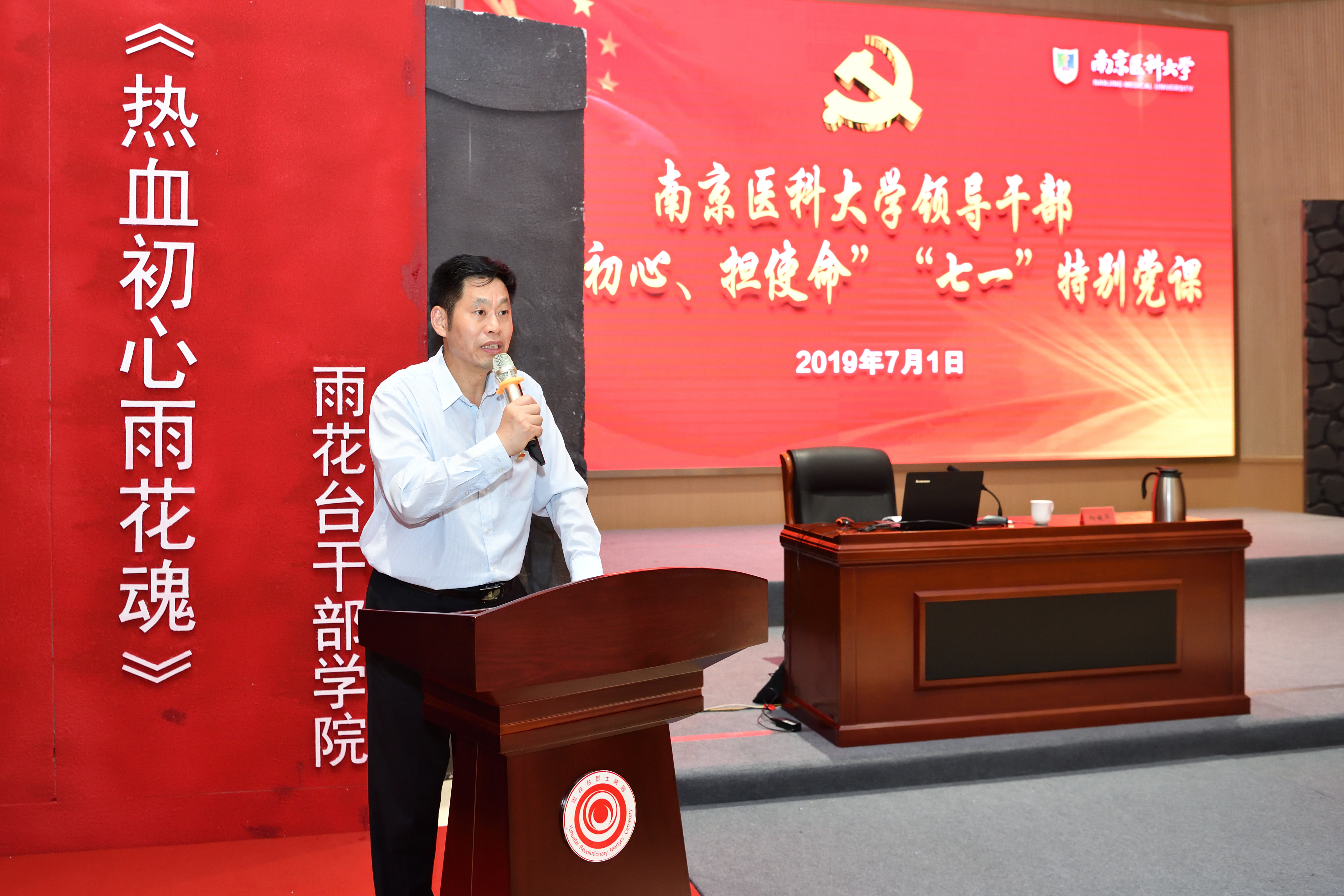 王长青书记在总结讲话时指出,“七一”特殊党课让在座的每一位干部经历了一次精神洗礼和心灵震撼,对共产党员的初心和使命也有了更深刻的认识和体会。南京医科大学历经85年发展历程,经过一代代人接续奋斗,取得了辉煌的发展成果。今天,我们应继承老一辈共产党员的光荣传统,以党员标准严格要求自己,守初心、担使命,为建设国际知名特色鲜明高水平研究型医科大学而努力,以为中国人民谋幸福、为中华民族谋复兴的初心和使命,锤炼忠诚干净担当的政治品格,勤于工作、敢于担当、勇于创新,为“健康中国”“健康江苏”建设再立新功。